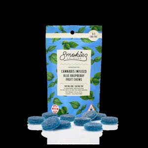 GUMMIES 100mg Blue Razzberry INDICA Fruit Chews - Smokiez